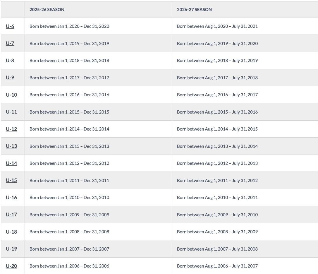 New Grade-Level Age Group Chart - Use 2026/2027 Column